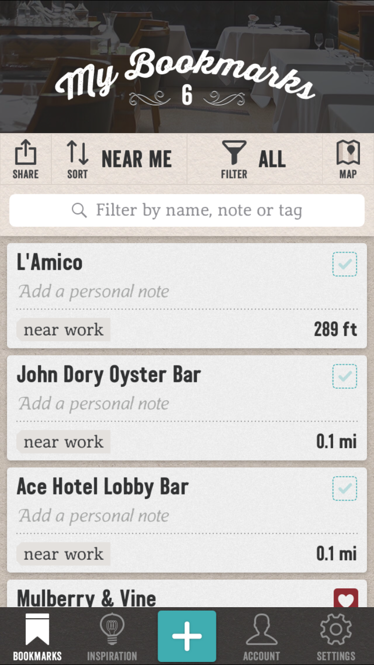 You know when you’re in a neighborhood and you’re looking for something to eat, and you’re like “I know there’s somewhere around here I wanted to go, but I can’t think of what it is?” Problem solved. Using your location or a search function, you can bookmark places you’ve wanted to try, have been, and places you love. You can tag them by category, neighborhood, or pretty much anything you want, and you can make notes about them, like “recommended by so and so.” Then, when you’re looking for that place you’ve been wanting to go, just pull up the app. You’ll remember what it is.
