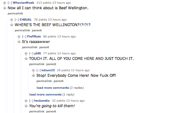 As of now, the Gordon Ramsay request is more popular than the requests for Rachel Maddow, Alanis Morrisette, Patrick Stewart, or, in fact, the vast majority of AMA requests — in fact, it’s one of the most popular threads on the entire site. (1500+ upvotes can’t be wrong, narwhals!) So if Gordon Ramsay or his team is listening, it’s time to face the internet hoi polloi: do it. Please do it. Do it do it do it do it do it.