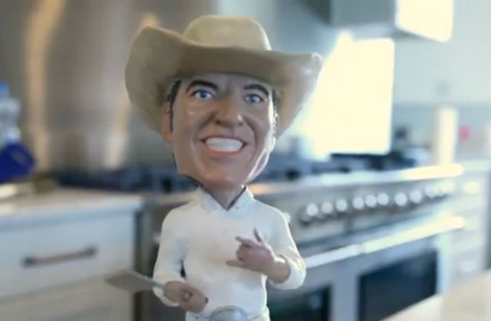 First of all, we find it really difficult to believe any chef doesn’t make their own mayo on the occasions a dish calls for it (hell, even we make our own). Second of all, Chef Love claims that his two favorite things to do while cooking are “saving money” and “using fresh ingredients.” Pretty sure the guy who has a mural of himself barbecuing in his house and his own bobblehead figure on his home stovetop doesn’t actually care about saving money. Third of all, the dish looks gross, for realz, and the mayo is a completely unnecessary addition! Well, we guess (spoiler alert!) we’ll tack this onto our embarrassing endorsements roundup…