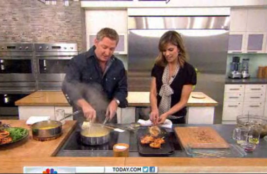 At the end of the segment, Tim even let Natalie pour on the beurre blanc (a.k.a. “white butter sauce,” if you’re from Texas).