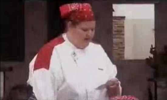 On tonight’s Hell’s Kitchen, two rivals get the showdown they’ve been waiting for, and the girls’ team falls apart even further. The editors decide to illustrate the fighting with black and white freeze frames, slow-motion laughter and dramatic close-ups. Then, something amazing happens: one of the cheftestants starts rapping. This isn’t a joke. She actually wrote a rap about being on Hell’s Kitchen and performs it for her teammates. When they said it was a “bizarre” episode, they weren’t lying.