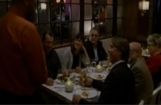 Last night’s Treme saw the soft opening of Chef Janette Desautel’s (Kim Dickens) new restaurant, the appropriately-named Desautel’s. Along with Davis (fresh off their Mardi Gras fling) and her parents, New Orleans’ sparkliest celebrity chefs were in attendance to support Janette. Check out John Besh, Susan Spicer, Donald Link, JoAnn Clevenger (plus her handsome date), and Scott Boswell all hanging out at the same table below. And yes, Janette’s sassy star waiter-actor Derek Watson, who appears to have worked for all of the chefs listed above, is played by none other than Anthony Anderson.
