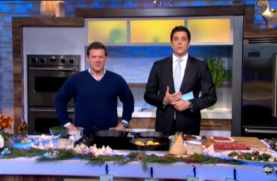 He told the whole story (or, at least, he tried to) on Good Morning America today, before Josh Elliott cut him off to bro out over the flank steak he was searing. Check out the clip below.