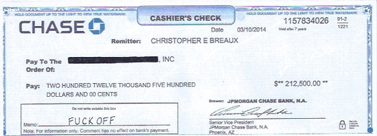 Yesterday, Ocean settled the matter once and for all by sending them the following check, which he posted on his Tumblr:
