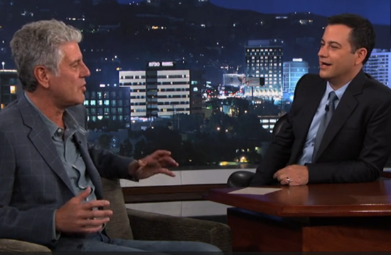 Last night, Anthony Bourdain and Jimmy Kimmel shot the breeze on Jimmy Kimmel Live!, and in between tales of having a trained killer for a wife and constantly disappointed Italian in-laws, Bourdain revealed his secret to becoming a Social Media Presence: photos of In-n-Out Burgers.