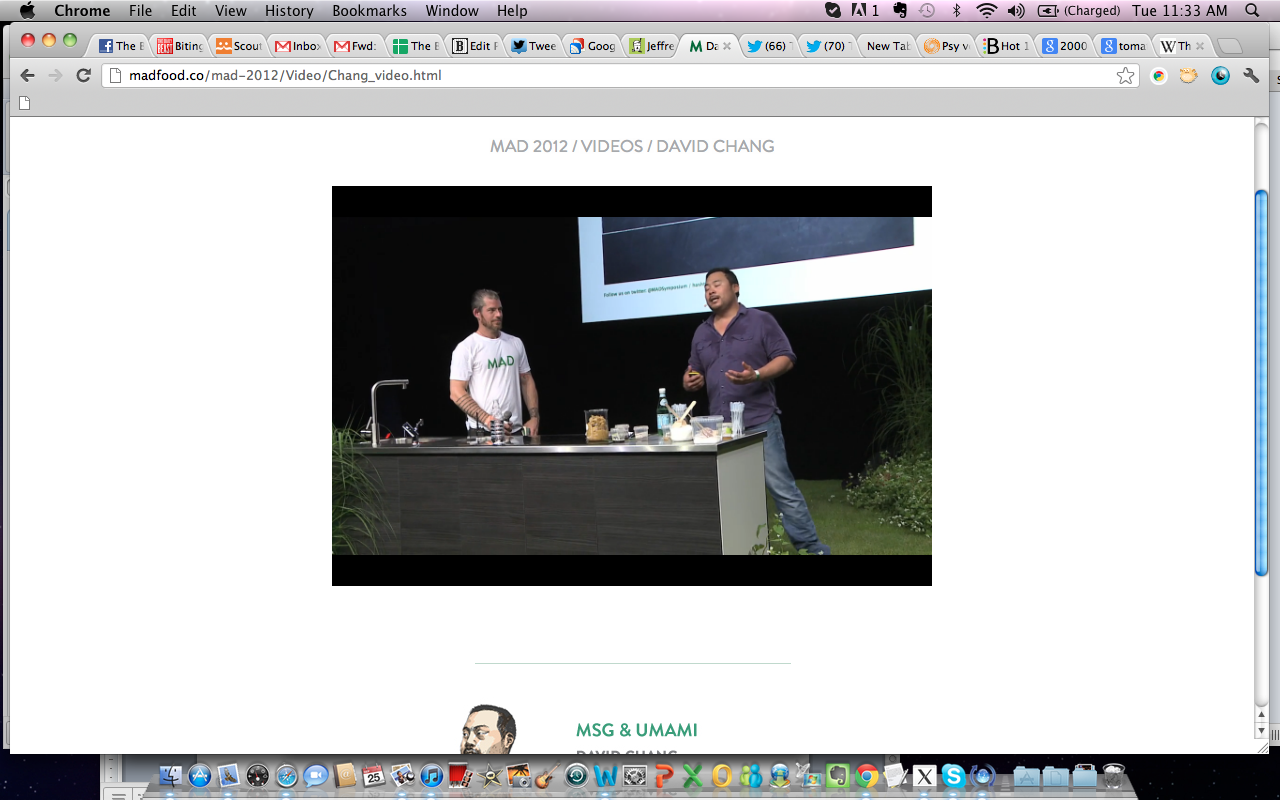 Poor, poor, bullied MSG. It’s the Edward Scissorhands of condiments. Everyone thinks that it’s going to harm them, give them heart palpitations and hot flashes and maybe even cancer/leprosy/the Andromeda Strain. And all this, even though, as David Chang says in this speech from the MAD Symposium, there are no studies that have proven that the umami-giving MSG has any negative effects on health. In fact, plenty of foods already contain natural MSG (tomatoes, parmesan), or artificial MSG (Marmite, Vegemite) — so why the hate on MSG in Asian foods? Chang tackles this question, as well as how he plans to help people overcome this fear.