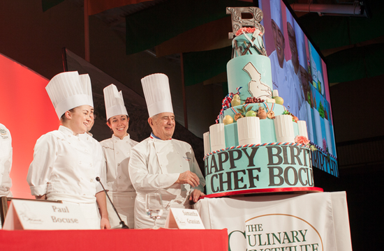 WATCH: Thomas Keller, Daniel Boulud, And Jean-Georges Vongerichten Give Paul Bocuse An Enormous Birthday Cake