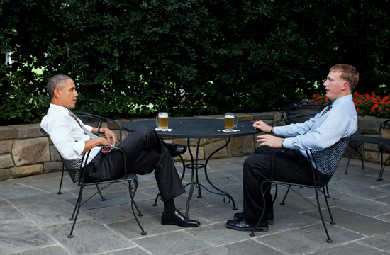 To recap: the public has known about the existence of the White House Honey Ale for some time, but never believed that the president actually drank it until the press learned that he carried a case of the beer with him on the campaign trail. But given that he prefers to heal our nation’s racial wounds with a beer on the patio, and that he shared a beer with a Medal of Honor recipient, should we be surprised?