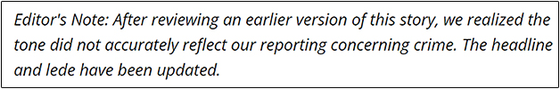 “After reviewing an earlier version of this story, we realized the tone did not accurately reflect our reporting concerning crime,” the outlet said in a note visible as of Thursday. “The headline and lede have been updated.”
