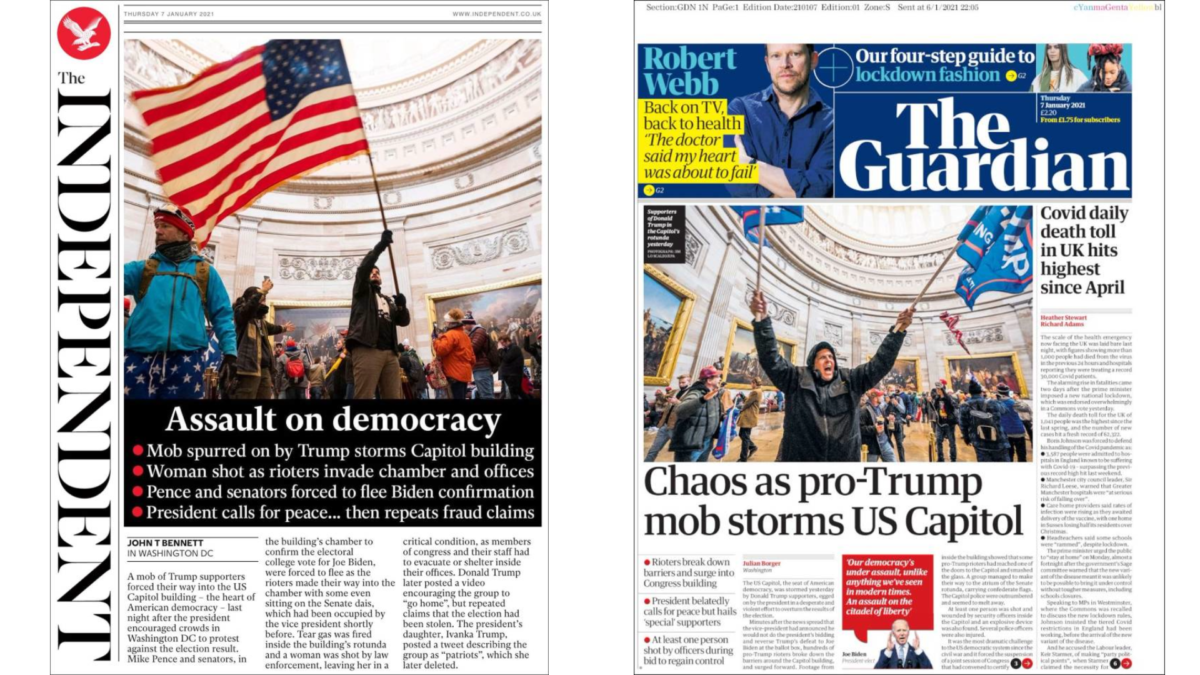 Anarchy in the US! Front Pages From Around the World Blasted the Trump-Incited Capitol Attack