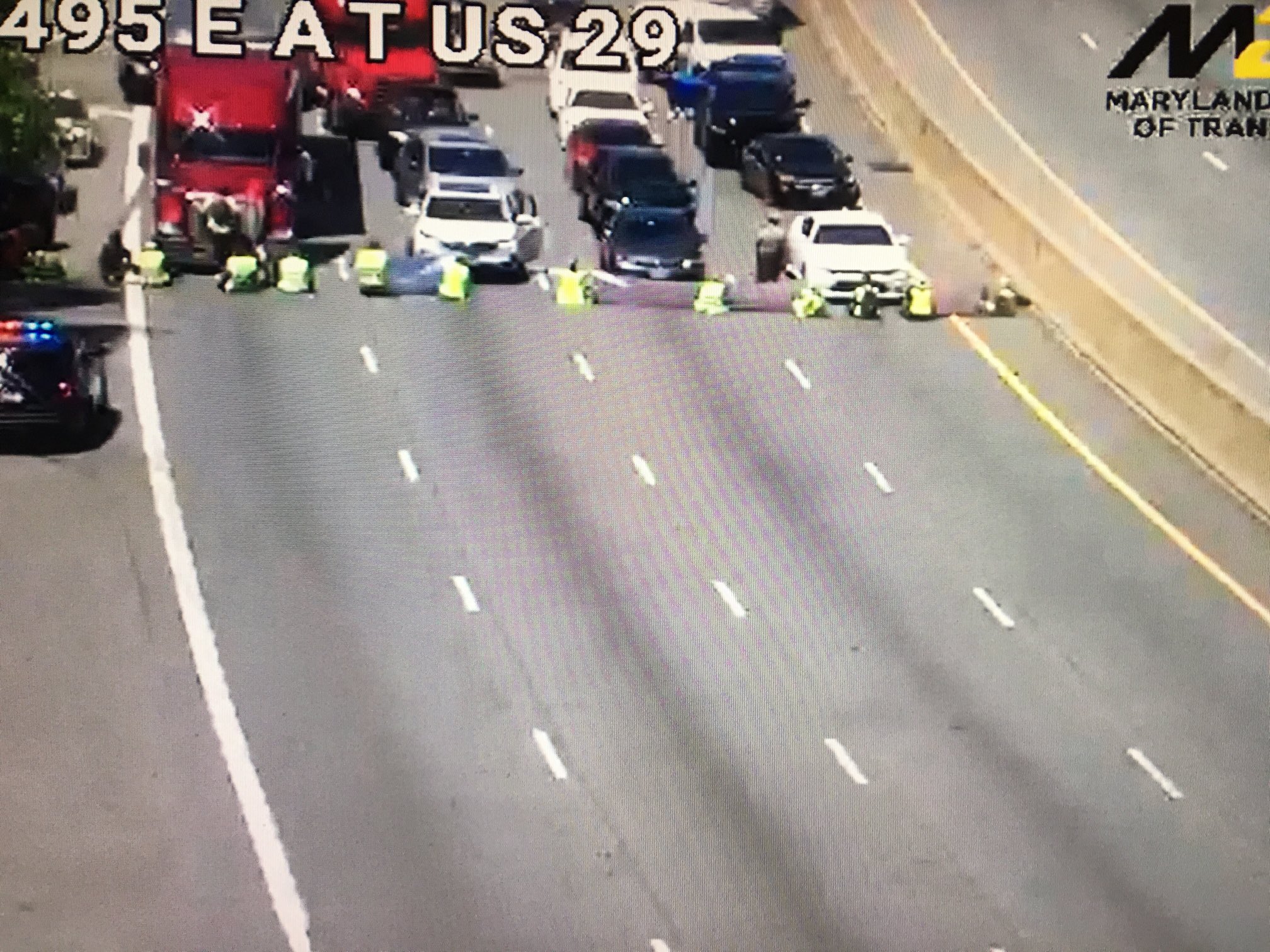 “One lane, I am asking one lane,” said the man who got out of his car to confront the activists sitting across the I-495 in Montgomery County, Maryland blocking traffic.