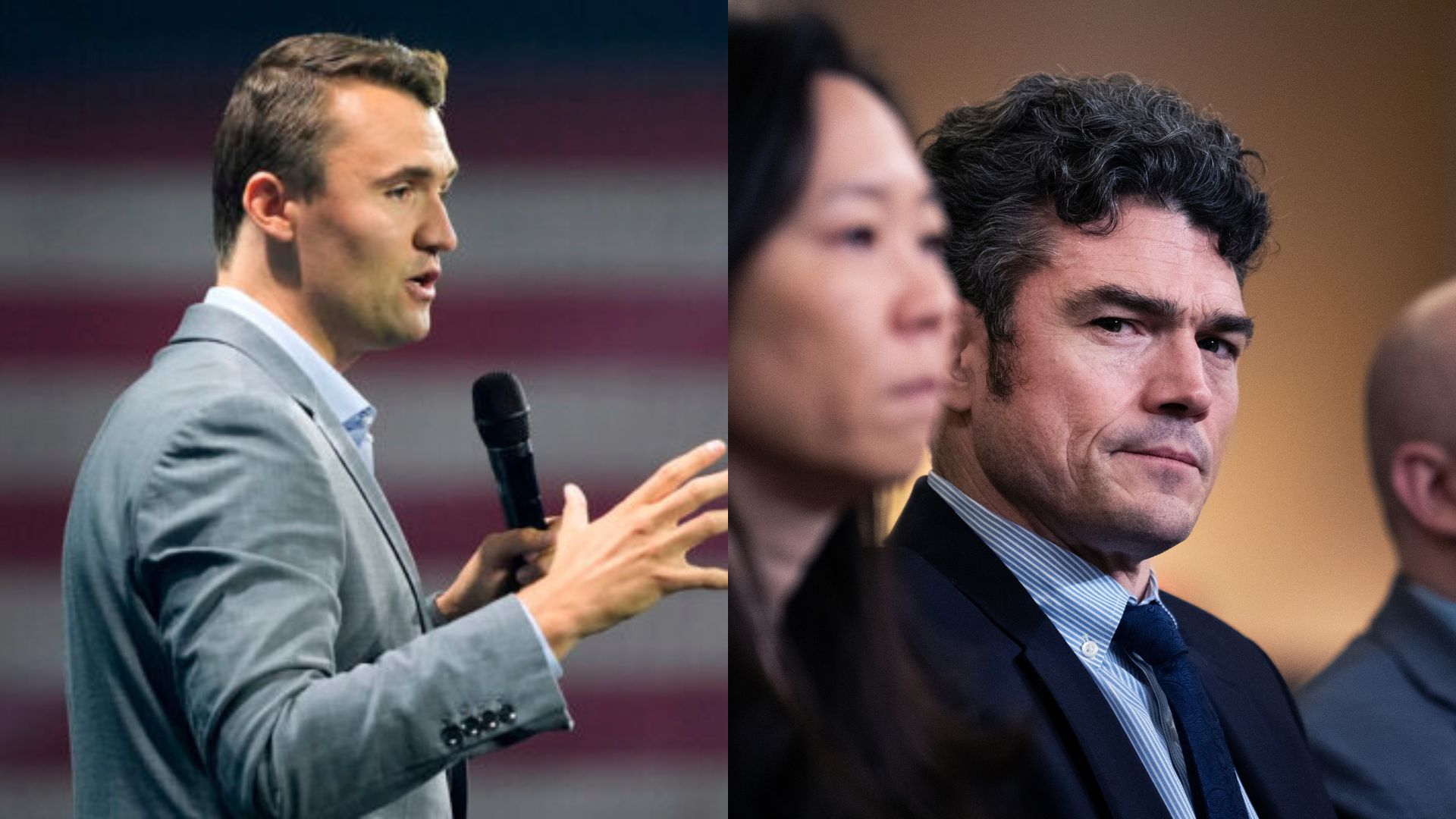 LEFT: Charlie Kirk (AP Photo/Alex Brandon, File) RIGHT: Joe Kent (Tom Williams/CQ Roll Call via AP Images)