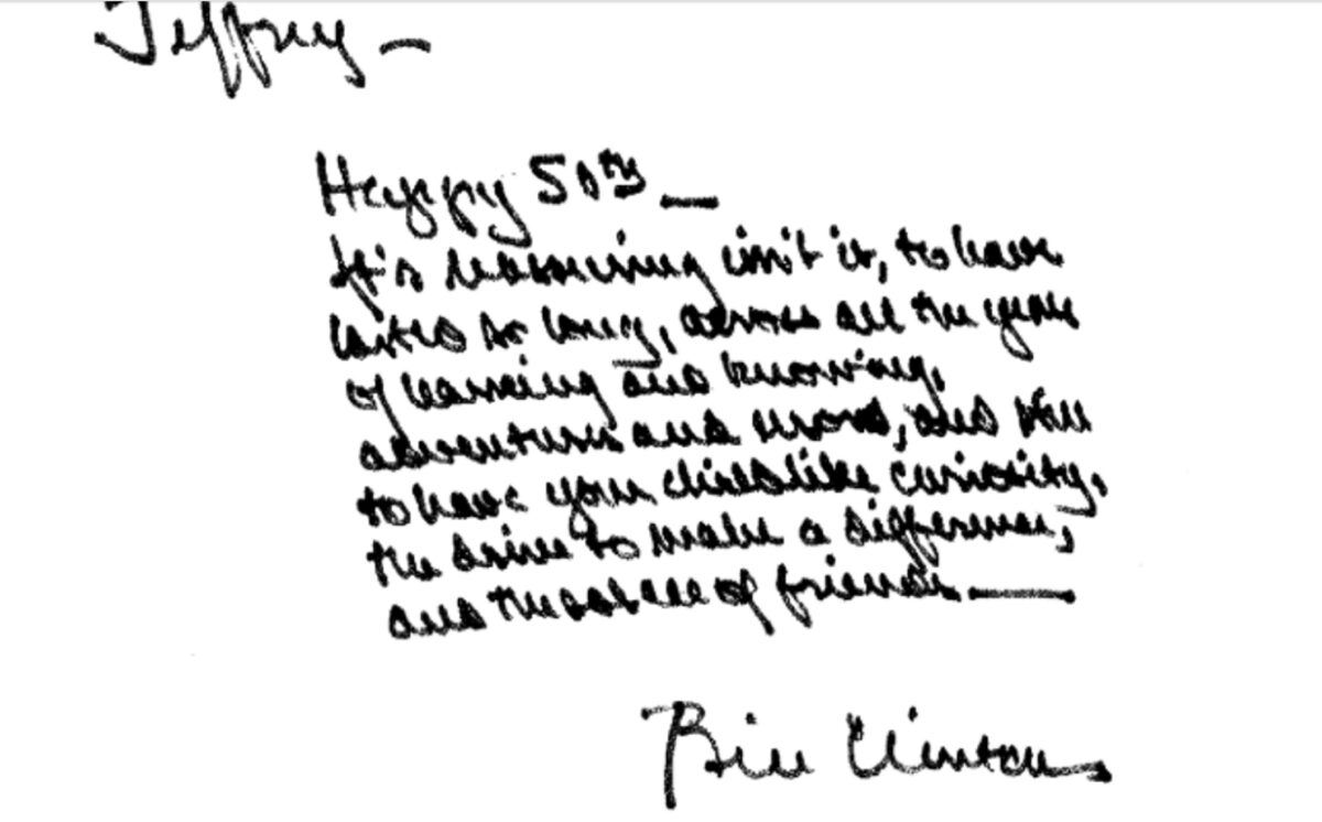 Bill Clinton’s Birthday Letter to Jeffrey Epstein Praising His ‘Childlike Curiosity’ Revealed by House Oversight Committee