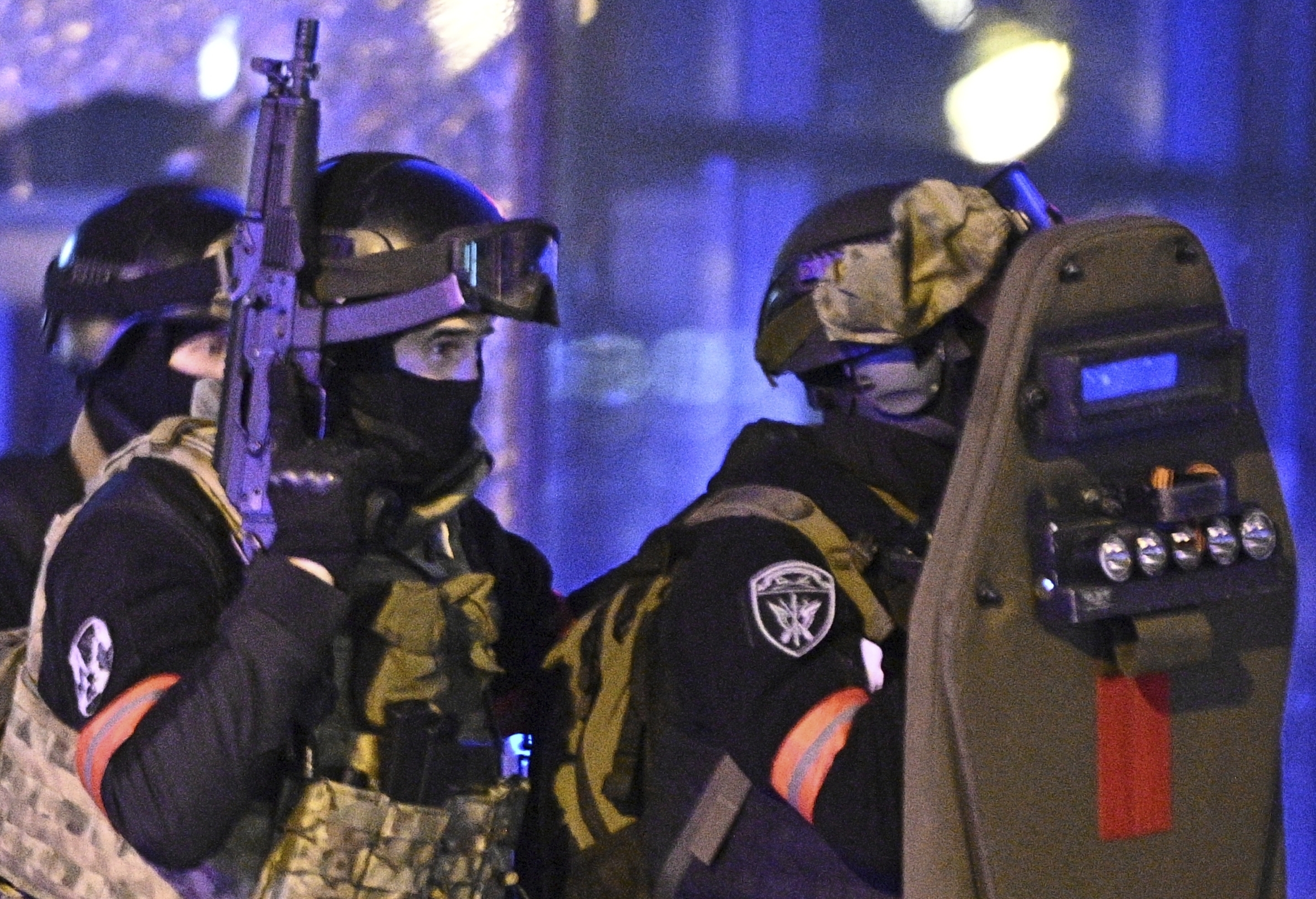 Russian news also reported that the gunmen used explosives, causing a massive fire with “huge plumes of black smoke” rising over the building. Riot police are now reportedly evacuating people from the venue.
