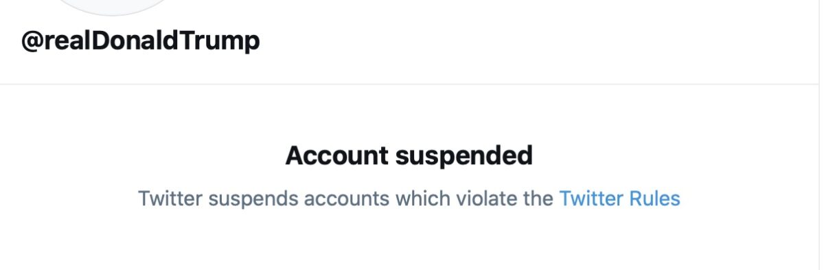 As of this posting, if you go to @realDonaldTrump, the account is down with a message reading, “Twitter suspends accounts which violate the Twitter Rules.”
