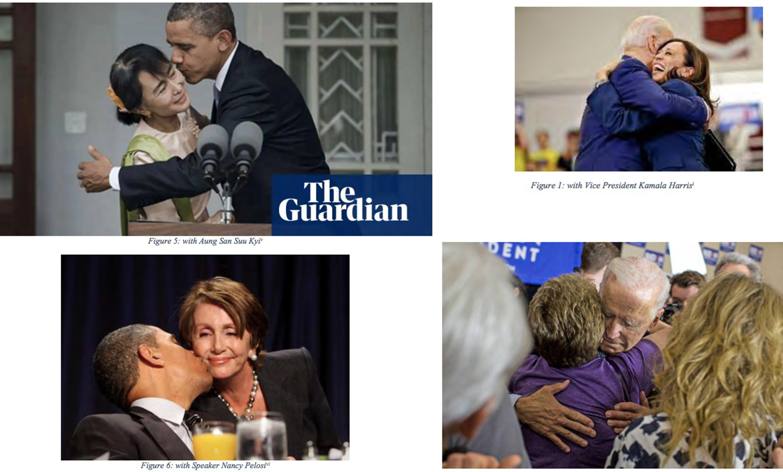 This too includes photos of himself hugging and kissing many people, but goes a little further to say, “Democratic and Republican politicians, male and female alike, use handshakes, hugs, and kisses to connect with others.”