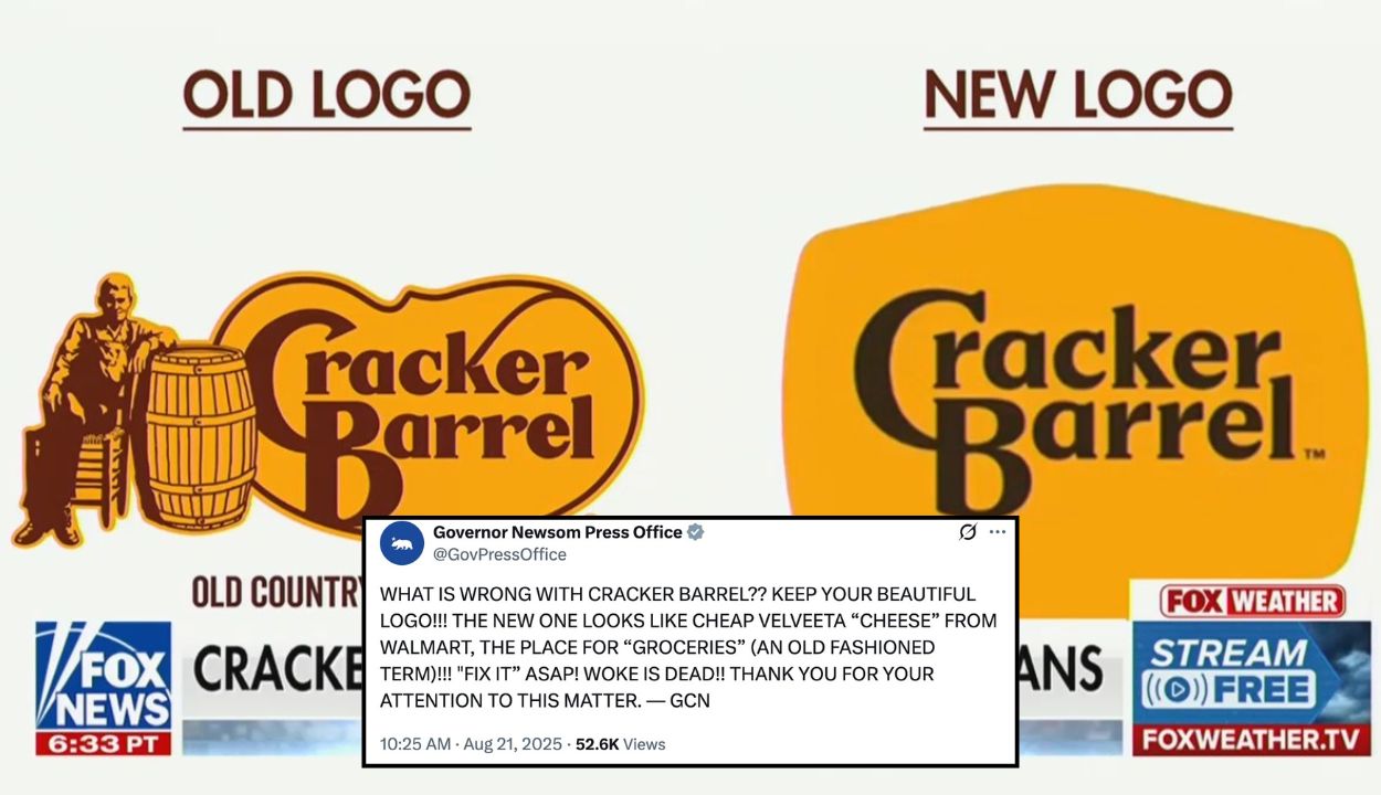 Gavin Newsom’s Notorious X Account Trolls Cracker Barrel as Stock Craters After Logo Change