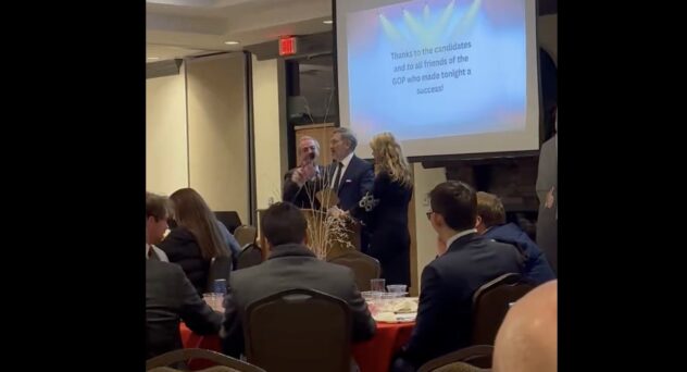 Thomas Massie had a microphone snatched right out of his hand Friday night as he spoke at the Oldham County, KY, Republican Party’s Lincoln Day Dinner.
