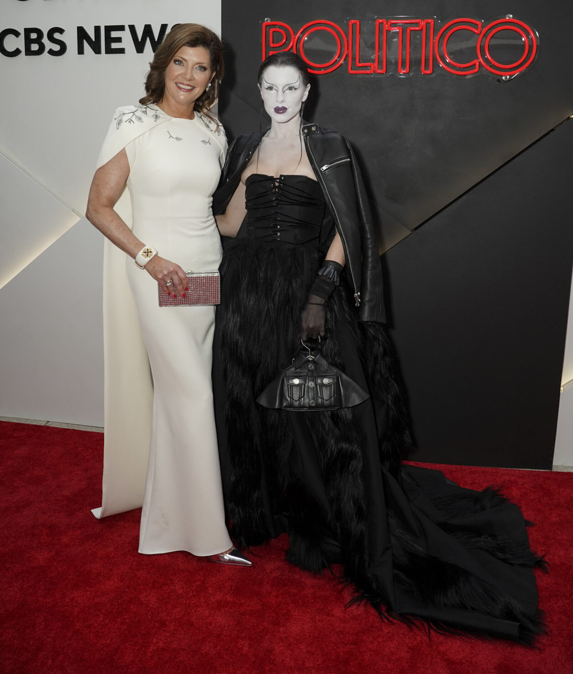 Norah O’Donnell and Julia Fox (and her train) at the CBS News/POLITICO reception. Mary Kouw/CBS.