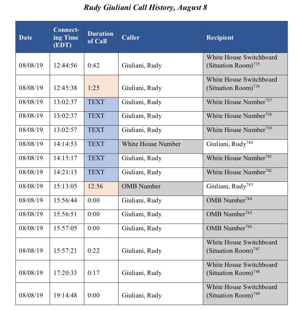 One notable aspect of the impeachment report released today by House Intel Committee Democrats is the call logs they obtained.