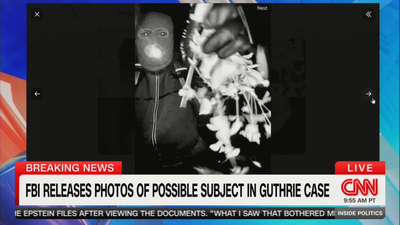 The images — showing a masked man in front of Nancy Guthrie’s front door while wearing black gloves and dark clothing — were first posted by FBI Director Kash Patel on X, with Patel saying the pictures were recovered from a “previously inaccessible” security camera.