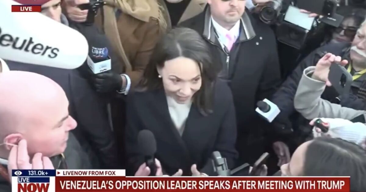 In video posted to Fox News LiveNow streaming service, Machado said, “I presented the president of the United States the medal of the Nobel Peace Prize, and I told him 200 years ago, General Lafayette gave Simón Bolívar a medal with George Washington on it. Bolívar since then kept that medal for the rest of his life. Actually, when you see his portraits, you can see the medal. And it was given by General Lafayette as a sign of the brotherhood between the people of the United States and the people of Venezuela who fight for freedom against tyranny. And 200 years in history, the people of Bolívar are giving back to the heir of Washington the medal…in recognition of his unique commitment to our freedom.”
