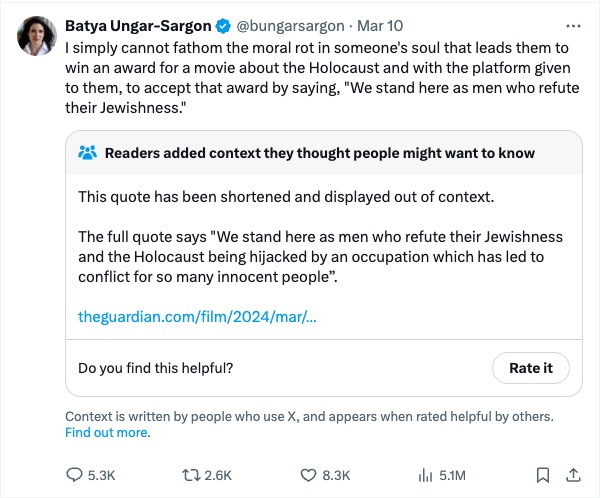 In one viral tweet, Newsweek opinion editor Batya Ungar-Sargon received a “community note” for also claiming Glazer refuted his own faith. She also did not correct the post.