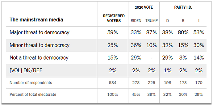 NEW POLL: Most Americans See Media as Bigger Threat to Democracy Than Electoral College, Supreme Court, Biden or Even Trump