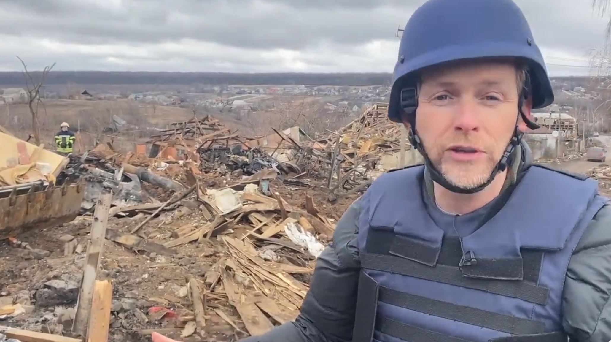 “This is a normal Ukrainian village, which has been smashed to smithereens for no reason that I can see of,” ITV correspondent Dan Rivers said, reporting live from the scene.