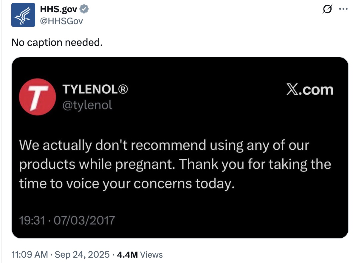 Now the HHS Is Touting 8-Year-Old Tylenol Tweet to Back Up Autism Warning
