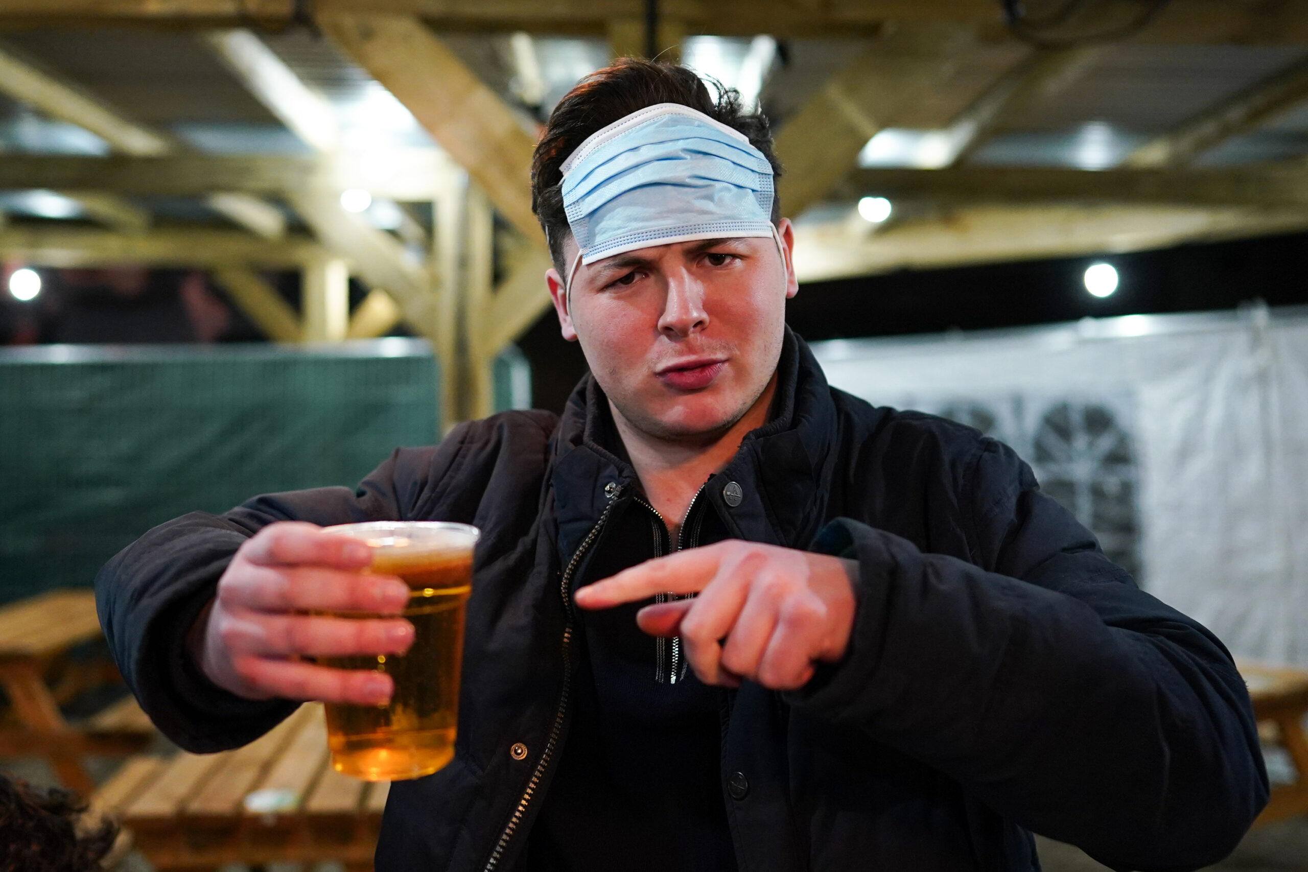 A customer reacts as he enjoys a drink at the Switch bar in Newcastle. Ian Forsyth/Getty Images.