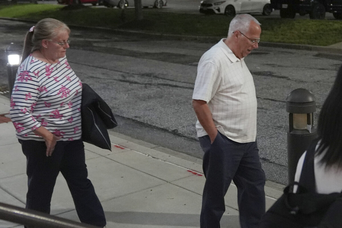Brother of Pope Leo XIV, Louis Prevost and his wife Deborah, walk at Joint Base Andrews, Md., after arriving on Air Force Two with Vice President JD Vance and second lady Usha Vance, Monday, May 19, 2025, after attending the inauguration of Pope Leo XIV at the Vatican. (AP Photo/Jacquelyn Martin, Pool)