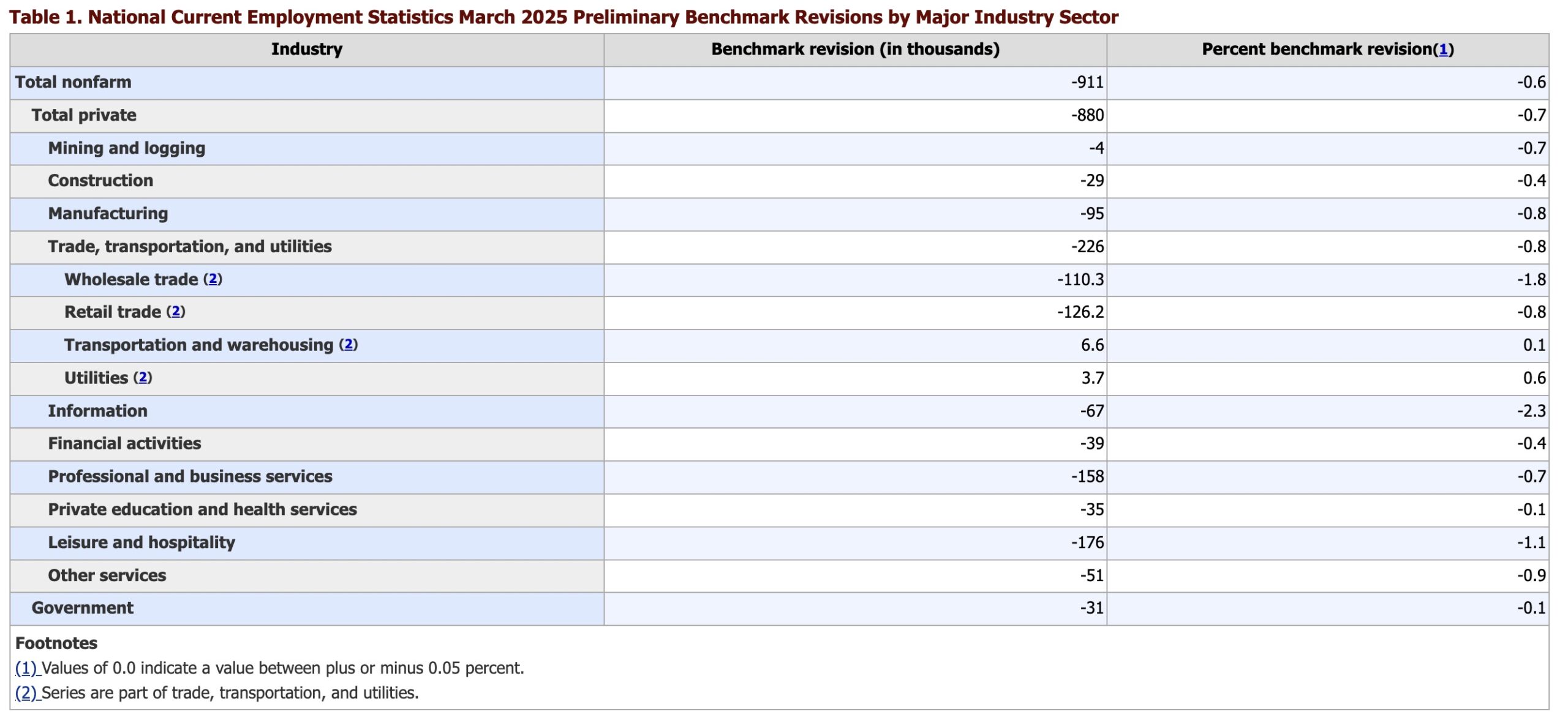 The revised BLS findings, out Tuesday, showed 911,000 fewer jobs than what was initially reported — painting an ugly picture of the U.S. economy over the past year.