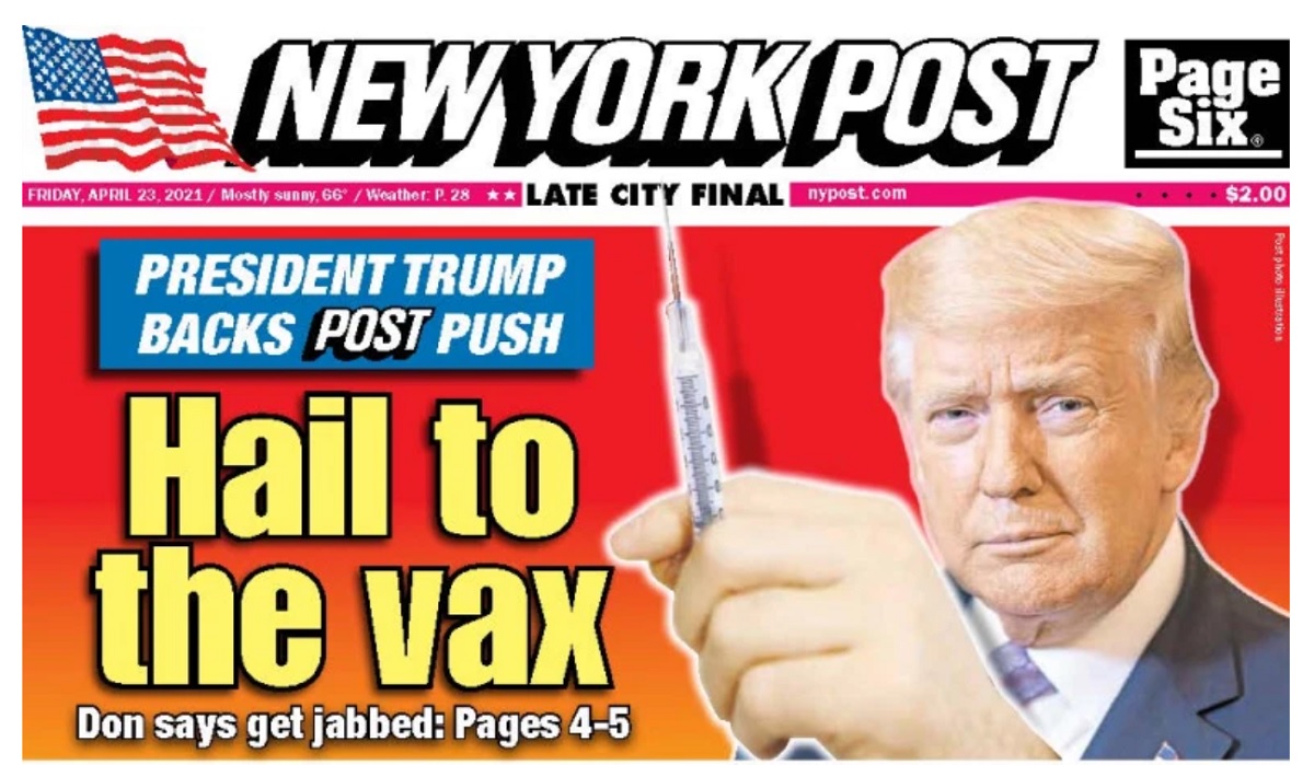 As his supporters continue to refuse Covid vaccines in droves, former President Donald Trump joined in the effort to get people on board — on page four of the New York Post.