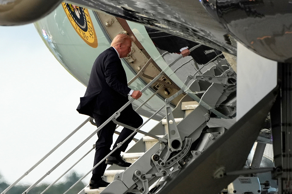 President Donald Trump quickly boarded Air Force One at Palm Beach International Airport on Sunday with a smaller set of stairs due to increased security around the airport.