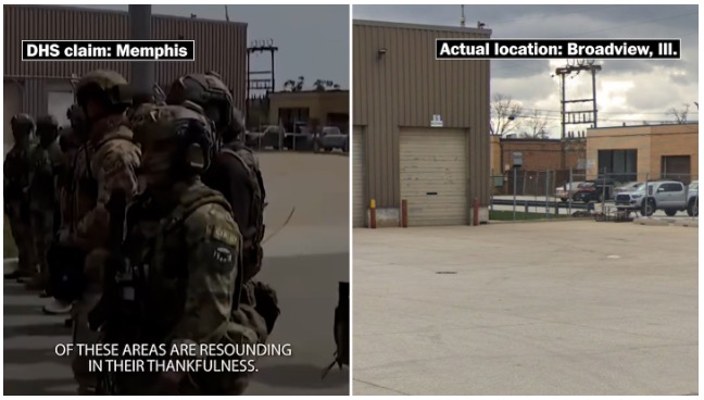 The investigation found a broader pattern of deceptive editing. In one case, footage promoted as showing “Antifa terrorists” attacking federal facilities in Portland was actually filmed outside an ICE building in Broadview, Illinois — 1,700 miles away. The video also cropped out the watermark of the journalist who recorded it. Another DHS clip boasting about a federal surge into Memphis used images from the same Illinois facility, with no indication that the visuals were recorded in a different state.