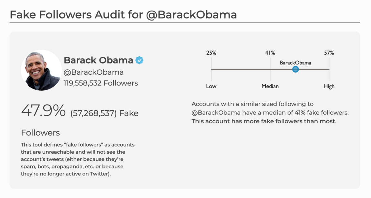 The problem isn’t a new one, but it does seem to be growing. Studies conducted by several organizations in 2016 suggested that around 60 percent of Trump’s followers at the time were “fake,” in the range of 5 million. By some estimates, nearly 80 percent of Obama’s followers were legitimate that year.