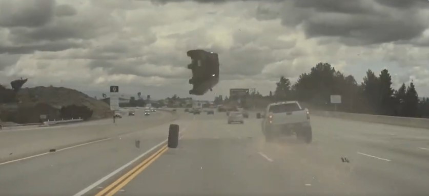 WATCH: Car Flips When Struck by Detached Tire From Car Nearby