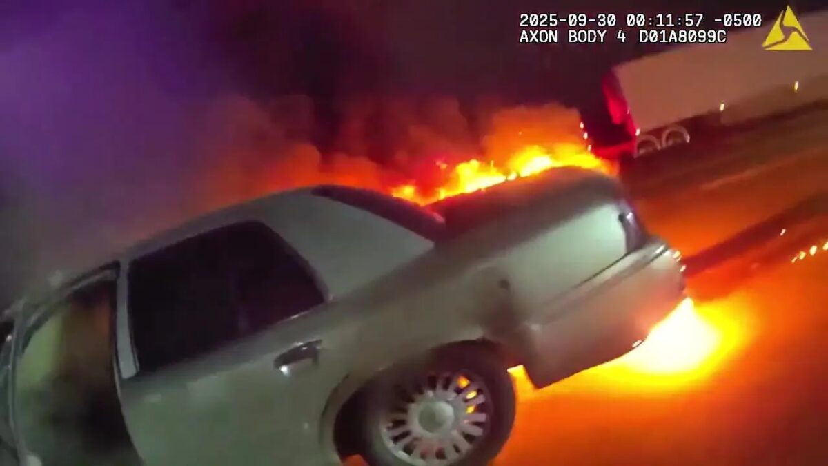 A Texas cop heroically sprang into action to save a woman from her burning car last month, resulting in shocking bodycam footage that has now gone viral.