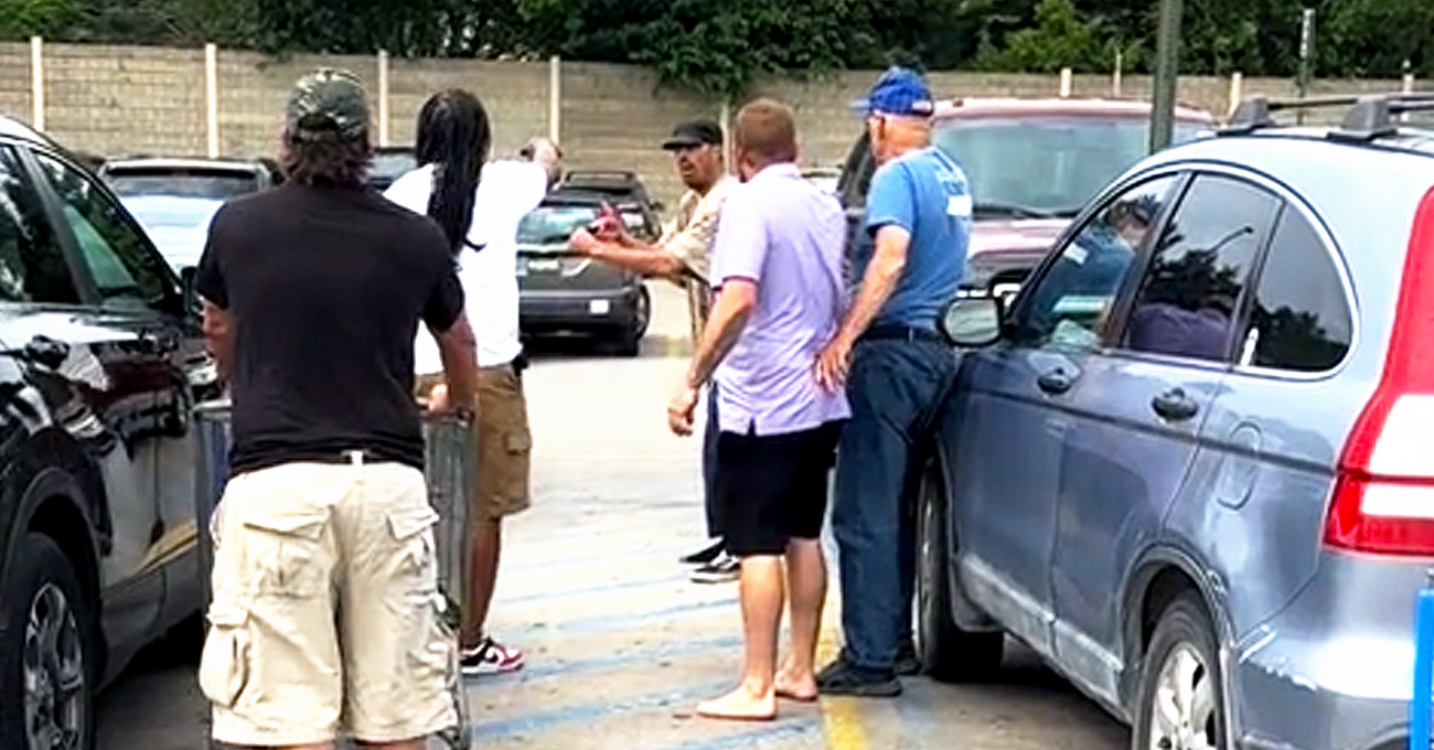 Video shared online purporting to show citizens confronting suspect outside Michigan Walmart.