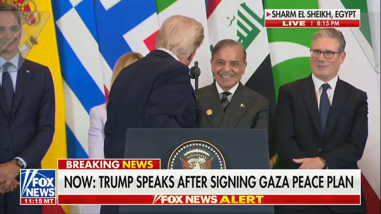 The microphones picked up a laugh from Meloni, while British Prime Minister Keir Starmer flashed a quick, awkward smile; Pakistani Prime Minister Shehbaz Sharif, based on the big smile on his face, seemed to enjoy the spectacle a bit more.