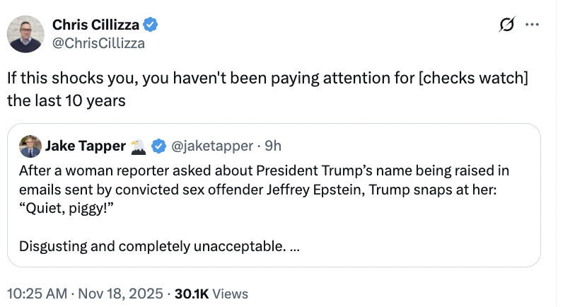 Blogger and xx-CNN and MSNBC political analyst Chris Cillizza said Trump’s comments should not shock anyone who has been following politics the past decade.