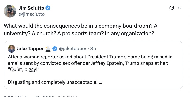His colleague Jim Sciutto questioned “What would the consequences be in a company boardroom” for such a comment.