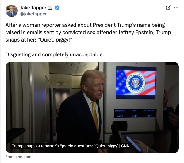 As for the “piggy” comment, CNN veteran Jake Tapper said it was “disgusting and completely unacceptable” from Trump.