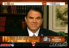 Senator Alan Grayson continued to play the part last night while guesting on The Ed Show. What part, you ask? Well, for fans of his on the left, he’s a hero for calling out conservative leadership (in particularly Vice President Dick Cheney.) For his detractors on the right, he’s a villain for coarsening the discussion and over-the-top rhertoric — like wondering aloud if Satan himself is writing the introduction to Cheney’s coming memoir.