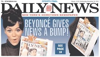 Yesterday, this writer got a little bent out of shape over the sorry state of the news in this country and the focus on meaningless and trashy stories. However, not even 24 hours later, my faith in the Fourth Estate has been completely healed thanks to the work of the Daily News. Today, the New York tabloid hit pay dirt with an incredibly hard-hitting front page story. What was it? Well, it turns out that Beyoncé, the world famous singer, had read a previous Daily News front story also about Beyoncé. News!