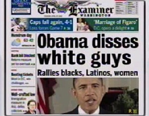 A YouTube message from President Obama specifically encouraging minorities and women to vote this November made some waves as Republicans accused the Democrats of discrimination. Perhaps the harshest critics of the video, the April 27 Washington Examiner headline declared “Obama Disses White Guys.” Dylan Ratigan brought on the paper’s editor Mark Tapscott to defend the headline yesterday.