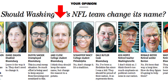 This sounds like plain bad luck, until it was revealed that Jacob Close agreed to be photographed by the Bloomsburg Press Enterprise as part of their “Your Opinion” feature, in which ordinary joes sound off on issues of the day. (For how long has the Onion been mocking this feature?) Close was asked his opinion about the Washington Football Team’s racist name, and said he thought the name should be kept but the mascot replaced with a potato.
