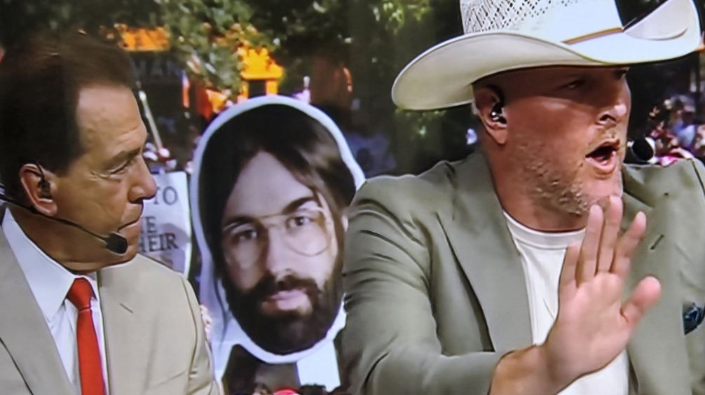 Fans Photobomb ESPN’s College GameDay With Cutouts Of Matt Walsh Character In Anti-DEI Film ‘Am I Racist’