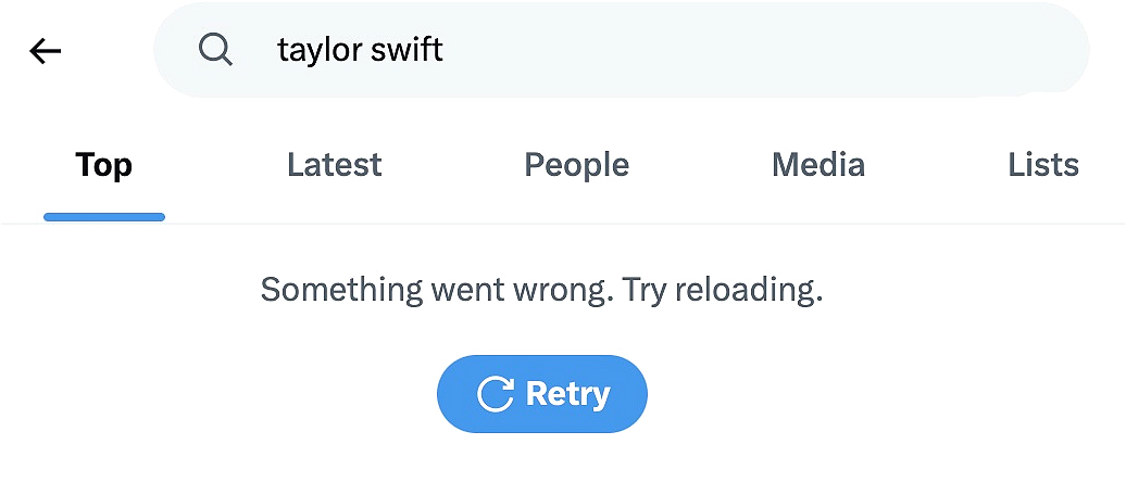 “Something went wrong. Try reloading,” appeared whenever the singer’s name was typed into the X search box.